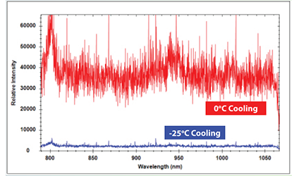 在紫外,可见和近红外波段有高响应 | 探测器配备2048个像元 | 200nm处的量子效率(QE)大于60%(QE峰值为80%) | 软件中可设置制冷温度(默认-25°C) | 超低噪声