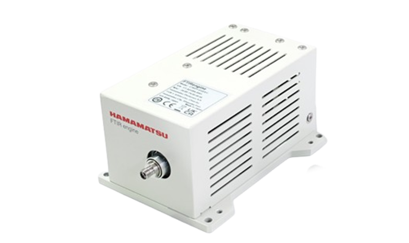 C16511-01 傅里叶变换红外光谱仪 (FTIR) 引擎是一款紧凑型傅里叶变换近红外光谱仪。迈克尔逊光干涉仪、控制电路和运算电路均内置于紧凑的壳体中。可以通过以太网连接 PC 来测量光谱和吸光度。它可以应用于现场进行的实时测量,而无需将测量样品带入分析室,并能进行持续监测。此外,以太网通信比 USB 通信具有更高的通信速度和耐用性,因此适用于 FA 设备。该光干涉仪配有内置光输入部分、分光镜、固定反射镜、可动反射镜 (ϕ3 mm) 和光电检测器。光电检测器采集的光强度信号根据可动反射镜的位置变化。通过处理(傅里叶变换)这些光强信号获得光谱。FTIR 引擎具有内置半导体激光器(VCSEL:垂直腔体表面发射激光器),用于监控可动反射镜位置,从而实现高波长精度的光谱测量。该产品包含评估软件,具有设置测量条件、采集和保存数据、绘制图形等功能。此外,还公开了动态链接库 (DLL) 功能规范,以便用户可以创建其原创测量软件程序。